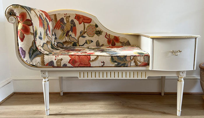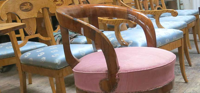- Upholstery – Re-upholstery for antique and modern furniture with expert advice on fabrics, leathers, trimmings, and fillings. Our workshop houses an extensive range of materials and sample books, with access to leading suppliers.