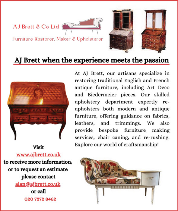 At A.J. Brett, we understand the value – both sentimental and financial – of every item entrusted to us. From careful restoration to tailored design, our mission is to deliver results that honour the past while serving your present needs.