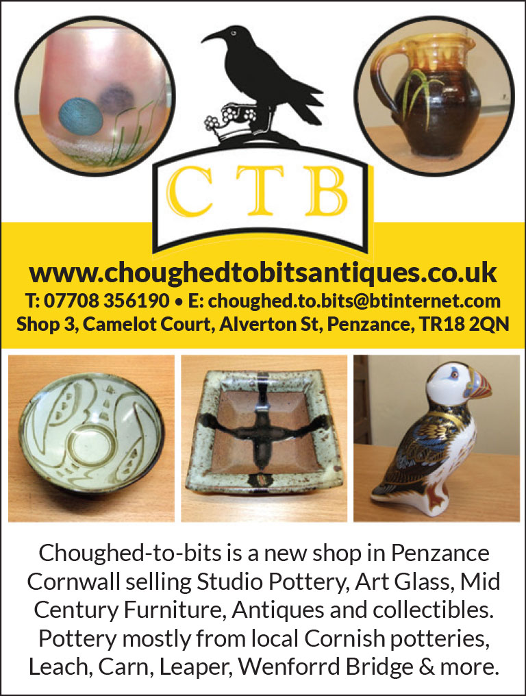 I source my stock mainly from local Cornish auction houses so there is always a plentiful supply of Cornish made pottery, including early to contemporary items from Leach Pottery in St Ives with some from Bernard Leach and his wife Janet Leach. Other ex Leach potters including Svend Bayer, Amanda Bryer, Michael Cardew and many more.