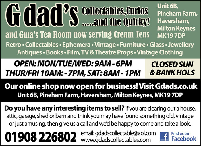 If you’re a fan of all things retro, collectible, and antique, Gdad’s Vintage Emporium in Haversham, near Milton Keynes, is a must-visit destination. With over 60 friendly traders, we offer a wide array of vintage treasures, including furniture, glassware, books, jewellery, textiles, vintage clothing, bags, suitcases, dolls, dolls’ houses, train sets, Dinky toys, and much more.