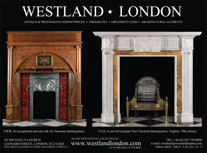 Latest StockWestland London, established in 1969, are antique dealers in prestigious and fine architectural antiques, specialising in antique fireplaces, mantels and chimneypieces in all styles from all periods. Also stocking a range of architectural and decorative antiques displayed in the interior of our listed former church in central London.
